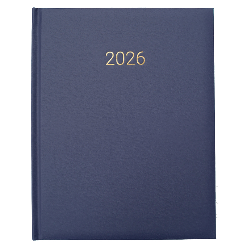 Svanur harðspjalda dagbók í A4 stærð. Vika á opnu og viku-og daganúmer. Málshættir og lands- og svæðisnúmer. Ársdagatal 2026-2027. Yfirlit yfir tungl, sjávarföll, vegalengdir o.fl.