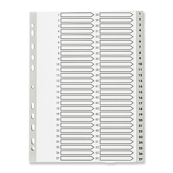 Milliblöð í stærð A4 með númeruðum spjöldum 1-54.