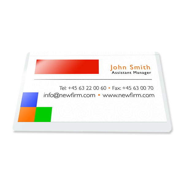 Sjálflímandi vasi fyrir nafnspjöld. Góð lausn til að merkja möppur, plastvasa eða hvaðeina fyrir ráðstefnuna og útsend gögn. Vasarnir henta einnig vel til að merkja hilluvöru.